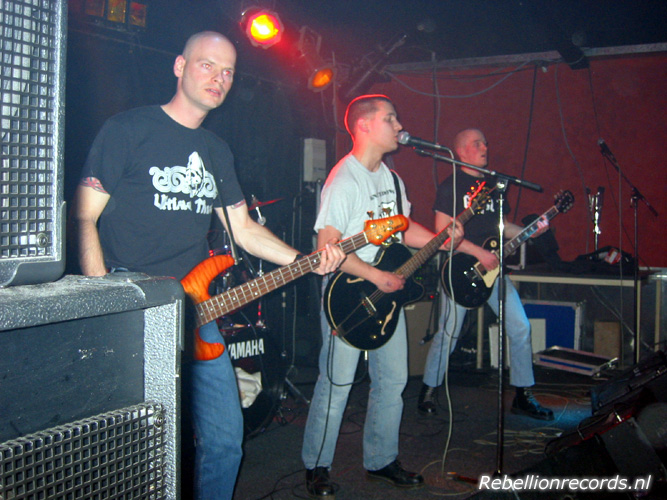 How about racism in the skinheadstyled music? -We got some rigthwing bands, some leftwing but most of them don't have (much of a) political message in their music. We fit in the last group. Besides the band we of course have a meaning in a lot of political topics but we don't want to express them in our music. Music is for us having a good time. The skinhead scene in the Netherlands like in Belgium is tending more to the rigth then the left. The scene here isn't big, because of that skins with different beliefs come to the gigs. But it all goes well most of the time, everyone knows each other for a long time. Friendship is more important than some party political bullshit.