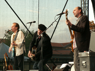 Kanske inte världens roligaste ställe att spela på och det kändes som om att de inte verkade så tända när de kom in men det verkade släppa eter ett tag. Trummisen var förbannad efter första låten på pianoljudet tror jag men det verkade ordna upp sig. De kör många låtar från den nya skivan och det gillar jag eftersom jag har lyssnat mycket på den det senaste. Det kanske inte är så att de vanliga som är där uppskattar de lika mycket och de kanske ville ha mer hits från förr. Det kan jag ju förstå i och för sig för så brukar jag också vilja ha det. Publiken som står längst fram blir mer och mer med på noterna efter hand och efter ett tag är det ganska bra stämning där framme.Fulla för kärlekens skull, Blues för Bodil Malmsten och den inledande Inget bra för mig själv är några av låtarna de spelar från nya skivan och det är lugna låtar men alla dessa har stora kvalitéer och skulle säkert kunna bli framtida klassiker i stil med Cornelis eller så. Visst spelar de några klassiker som Ett hus på stranden(deras bästa låt?), Pojkar pojkar pojkar, Kärlekens tunga, Alice och 3:an spårvagn genom ljuva livet. Det hade kanske varit mycket trevligare att sett gruppen på en mörk rockklubb men på samma gång är det bra att få ut sin musik till så många nya människor som kanske inte hade hört dem innan. Gruppen ser väl inte ut som någon rockgrupp längre men de har ändå en finurlighet och gnista så jag tycker nog att det räcker långt i dessa sammanhang och som ett av Sveriges bästa liveband kan vi nog räkna dem.