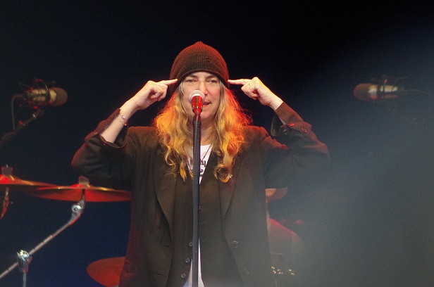 Banga is heavy and meditative and Pissin in the river is so good ... On Banga some guy comes up and plays the guitar (I thought it was Plura but no one around me know who that is either): Because The Night is done in a wonderful version and also a long Gloria .... ecstatic, it is just when I think ... as an encore, it will be two really hits the People have the Power, and Rock n Roll Nigger and all in all it's a really good concert but I miss obviously some songs and could have been without someone but really happy and lively, I run home to write about this ..