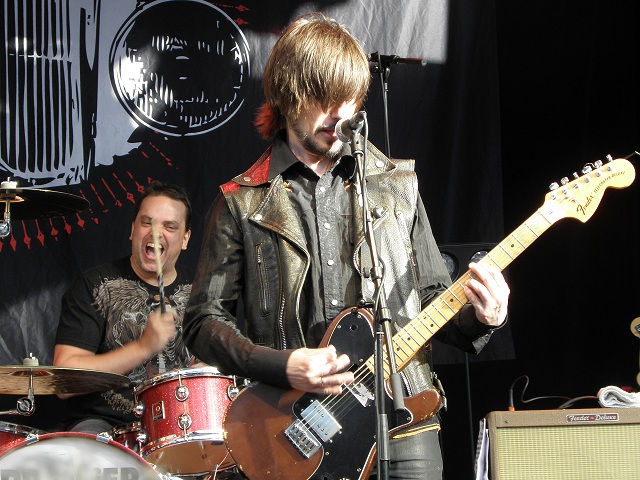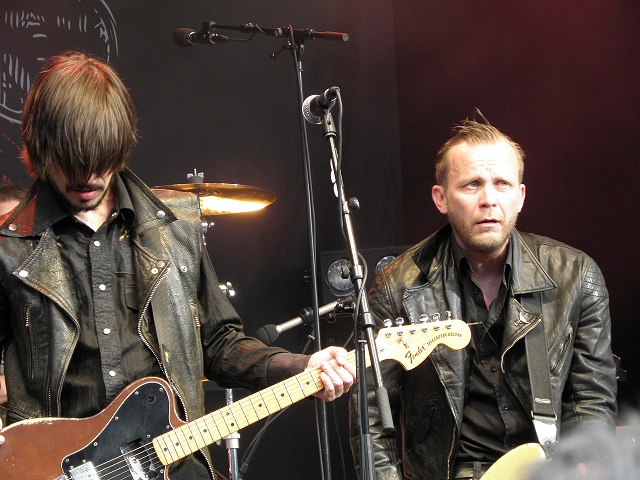As usual whn you´re on Taubestage to see a concert sitting in daylight it feels weird in some way but anyway Okay in some way. It´s maybe my age which makes me think it´s ok to sit down, anyway before the concert.....The band seems to be in topshape when they come up on stage and it was a year since I last saw them and to see Sator is always good...I have seen them a lot of times so I know. It´s aband with many personalities and most of all I really like much that they have their own style on stage and they have´nt took foreward some special steps or dancemoves and they do their thing. Mickes drumplaying and his style is wonderful to see and Heikkis bassplaying is fun and he´s really gives everything on stage. The frontfigueres Kent and Chips varies the vocals in the ol good way and they always fun to listen to when they talk....Hasse behind his synth(which he doesn´t use so much) is cool and impress on us with double tambourines. As usual they do some really strong songs as Gamma gamma hey, Pigvalley beach, I wanna go home, We´re right youré wrong, Goodbye Joey and I´d rather drink than talk.Kristoffer Åström comes up on stage and sing a Misfits-cover which he have forgotten some lyrics on. Eikki sings one song I wanna be with a rock n roll girl which he doesn´t know the whole lyrics too either. Heikki is a real showman it´s been shown and he gives the group one more dimension and the whol group seems to have very fun on stage. It´s a shame anyway with Taubestage where people can´t stand up and it must be a boring work the guards have there to say to people to sit down and don´t go up and have fun...But as I said before Sator is always good. Sator must be Swedens best rockband(many more times better than Hives!) and they should have a bigger audience but they seems to be enjoying us people who have come today to see them. |