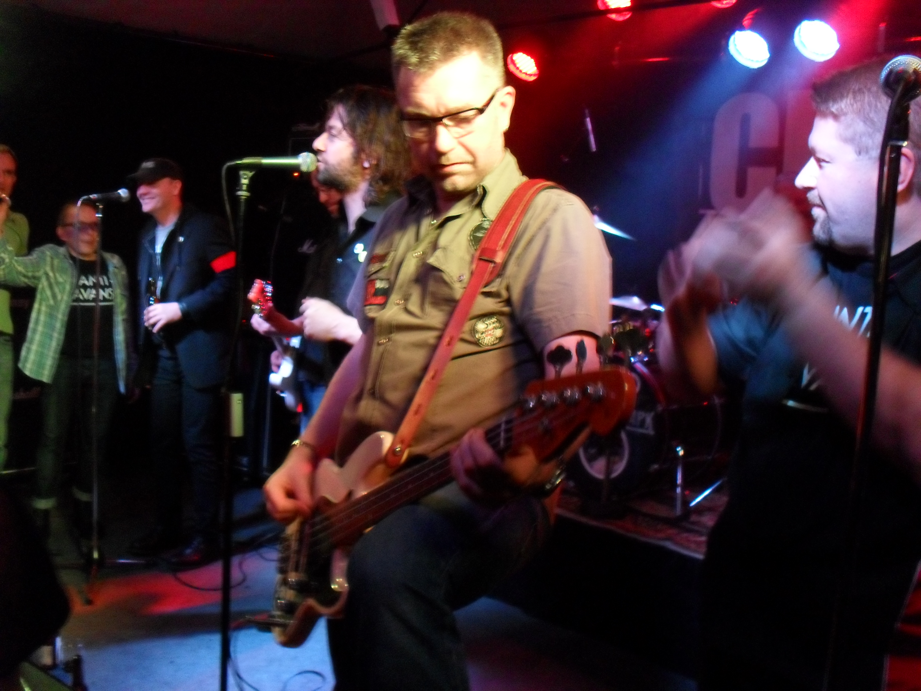 To be celebrate that it was 30 years ago that Straw Dogs from my old hometown was placing themselves on a stage for the first time on Hällevi on Orust so was it time to celebrate big with this reunionparty and also this day should their debutvinylsingle be released...fun. It was like the singer Lasse said, this is the day like christmas day in other cities when the old ctizens come back and meet each other. Me and Andy from Partisans would be the one which would be the DJ´s this evening and that was an honour to do that on the concert. I have seen the group many times and sure I remember the first concerts when they were a really unsure band and now they´re really good musicans. This evening first band is the young Uddevalla punkband Kungens Knektar which really makes me think there is a future for the punk in Uddevalla. They had obvisiosly had bassist before but he have quit but I think they´re doing it really good on three man. I noticedsongs about stupid polices, right wing politicans and ht eusual punklyrics but I want to hear with the group and the singer(and today bassist) seems to burn for the punk thing. After this didn´t any young people came up on stage because it was the old veterans Psycho Therapy and they gave us punkclassics in a whole lot and Sundberg was forced to do the usual singing on stage and he sang along on Psyhco Therapy. After a while of waiting so was it time for our punkheroes from the past and the guys doesn´t look any day over 17 years or what they were the first time and Lasse have a really good scenepersonality and he loves the things he does and Icke, Sonny and Larre helps us to get a really nice evening together. They have some people on stage like Anti-Avans and Blomgren from Troublemakers and some more people. They do all their hits like Mörknande framtid, U-a punx, Reagan,City of the dead etc and also the wonderful Glory Guys song Timmy comes in a new style here. Here we don´thave any middleaged guys and I look foreward to the 40th jubilee already and as the last song they do a really good version of Staten och Kapitalet and the scene and the floor is filled with dancing and singing people and the plce is almost blowing up. A really nice evening and now I wait for the fullength, new songs and a world tour.